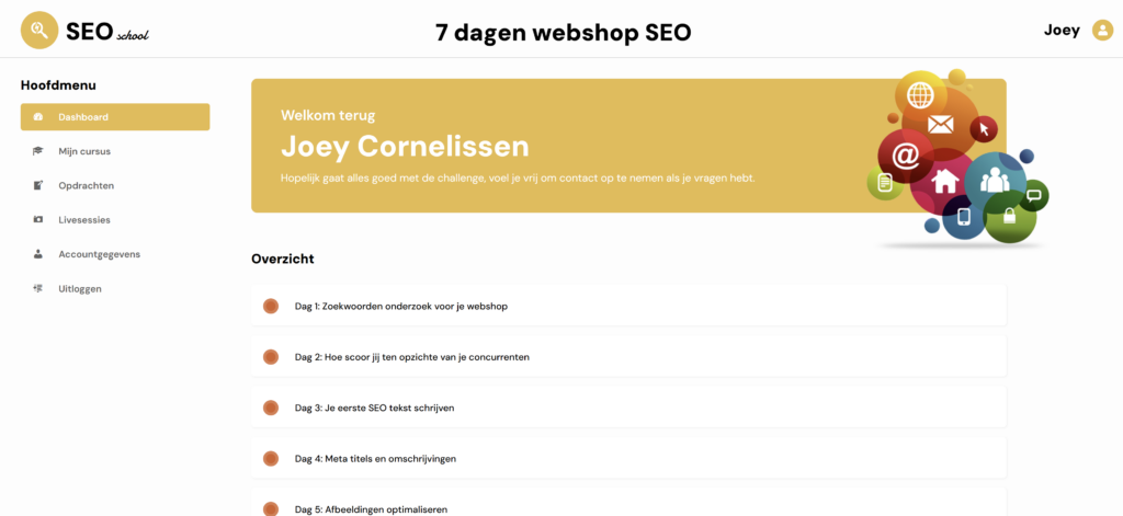 Na zeven dagen zul je nog niet direct bestellingen via Google ontvangen; zoiets beloven zou onrealistisch zijn. SEO kost tijd, maar tegenwoordig werkt Google vrij snel. De resultaten zijn bovendien volledig meetbaar. Deze training biedt je de basisvaardigheden om je SEO continu bij te houden en ervoor te zorgen dat je weet wat je moet doen wanneer je nieuwe producten of pagina’s aan je webshop toevoegt. Na deze training weet je precies waar je op moet letten en hoe je ervoor zorgt dat deze producten succesvol concurreren op Google! Met een uurtje per week kun je vervolgens prima je SEO bijhouden en bestellingen gaan verwachten!
